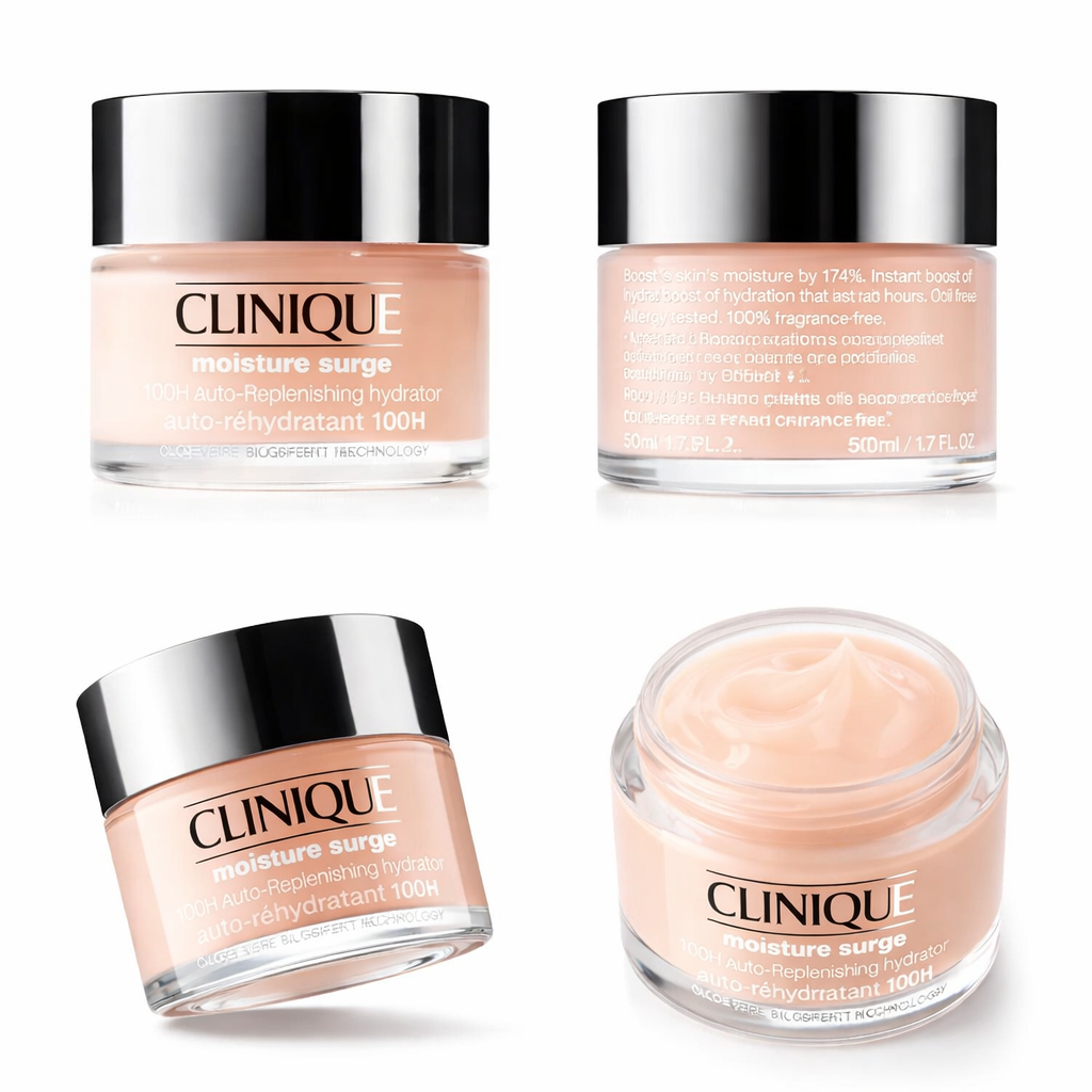 Clinique Moisture Surge 100H Auto-Replenishing Hydratorکرم آبرسان Clinique Moisture Surge 100H یکی از پرفروشترین و محبوبترین محصولات برند کلینیک است که با فرمولاسیون پیشرفته خود، رطوبت پوست را تا 100 ساعت حفظ میکند. این محصول بافتی بسیار سبک، ژلی-کرم و فاقد چربی دارد و بلافاصله پس از استفاده، پوست را شاداب، نرم و درخشان میکند.